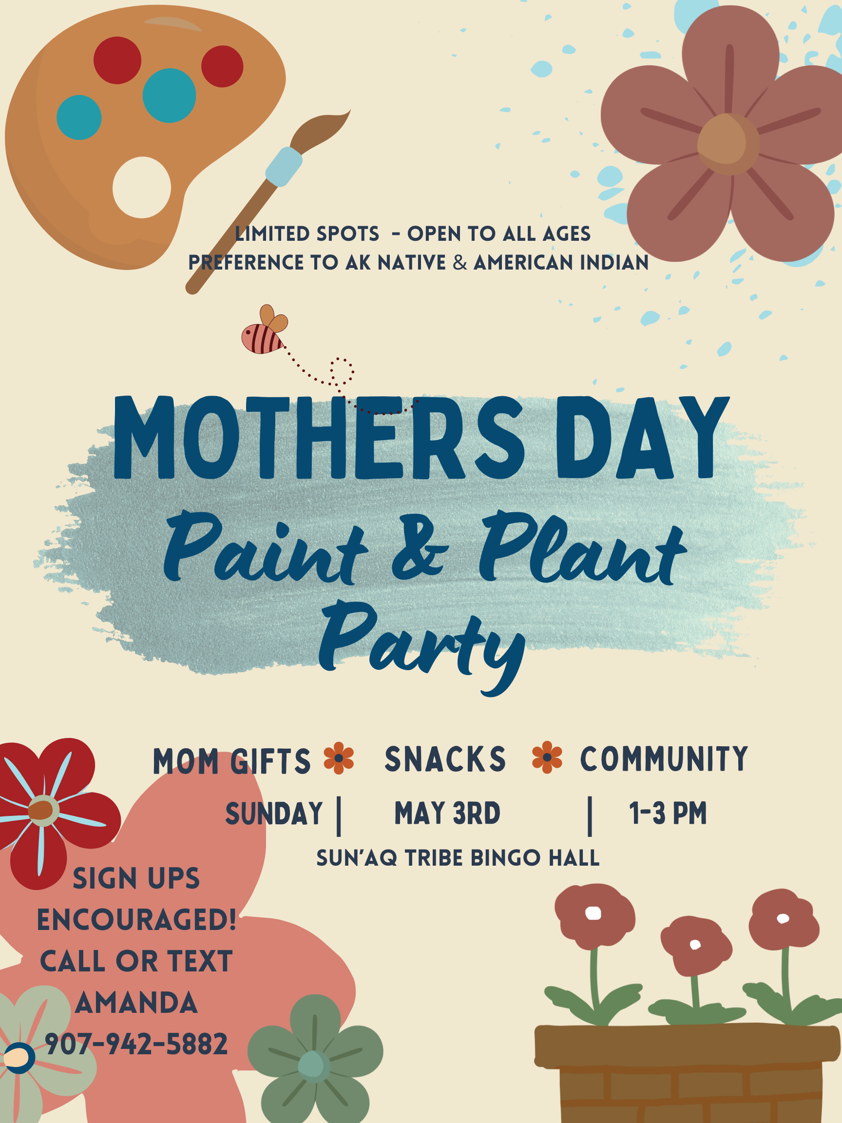 Join us for a fun afternoon crafting for those special mothers in your life! Let us know you’re coming. Contact Amanda at 907-942-5882.